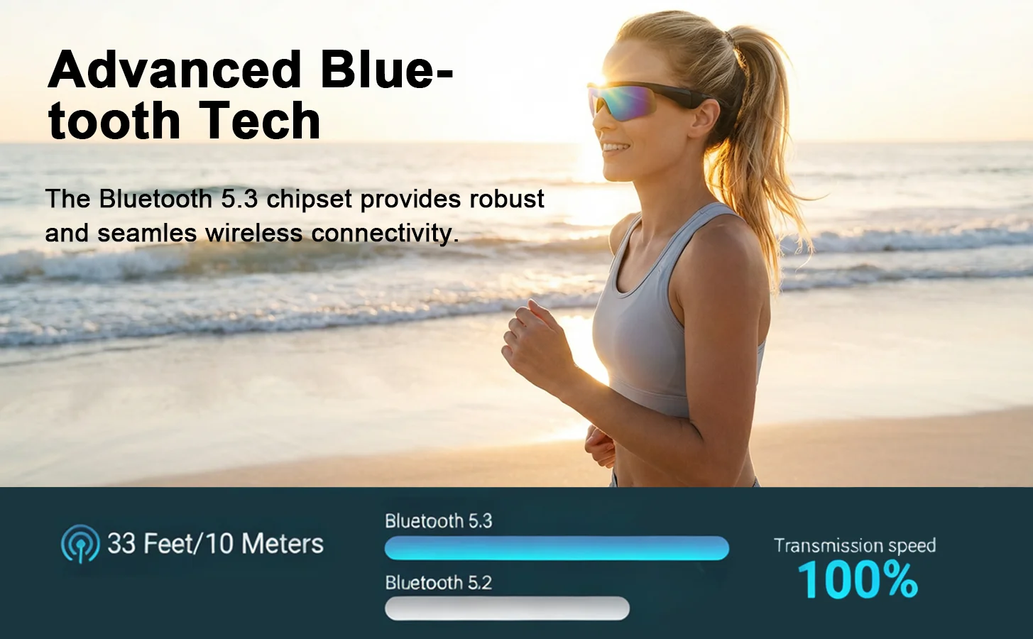 The Bluetooth 5.3 chipset provides powerful and seamless wireless connectivity with a transmission range of up to 10 meters.