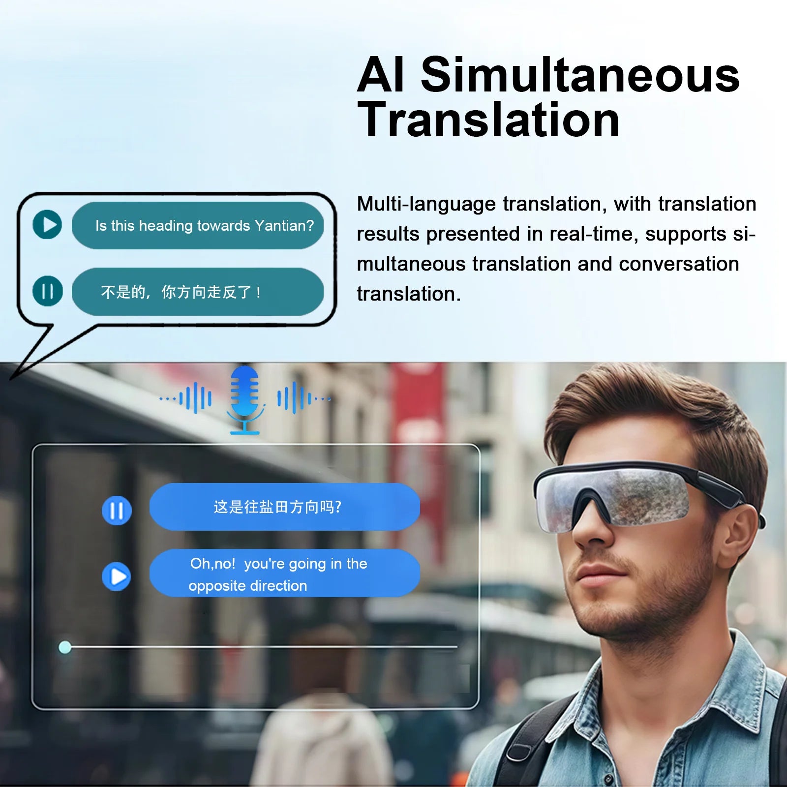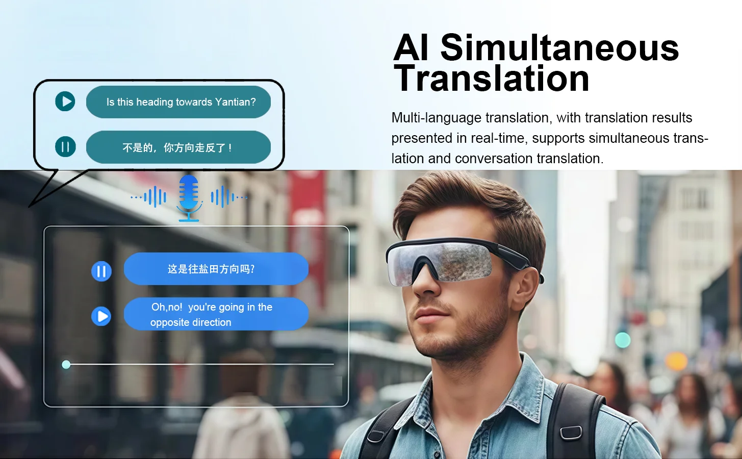Function: Music,Voice Assistant,calling,Sun protection,Anti-blue light,AI translator,Ai