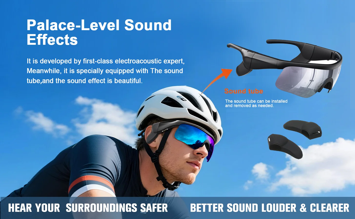 Advanced acoustic technology delivers richer and clearer sound. Equipped with dual speakers and detachable sound tubes, this device offers a high-quality audio experience, making you feel as if you are part of a live performance. Its open design allows you to enjoy music while maintaining awareness of your surroundings. Additionally, it features a high-sensitivity noise-cancelling microphone for clear call quality.