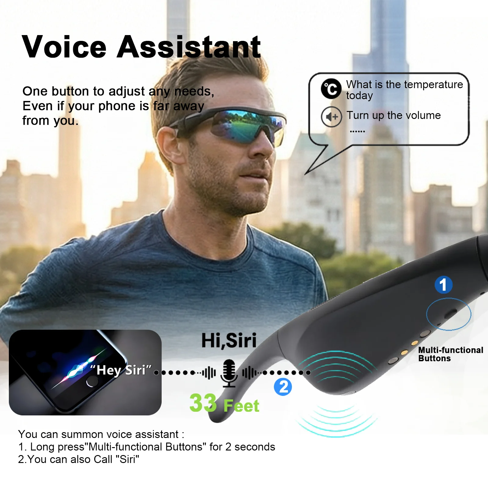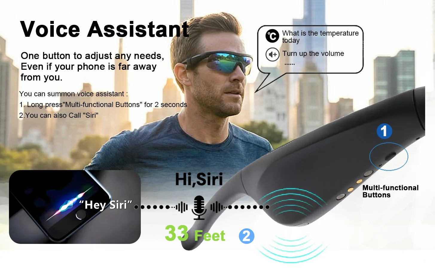You can summon a voice assistant by simply saying Siri, Cortana, or Google. Even if your phone is far away, smart sunglasses can seamlessly handle navigation, music, and hands-free calls.