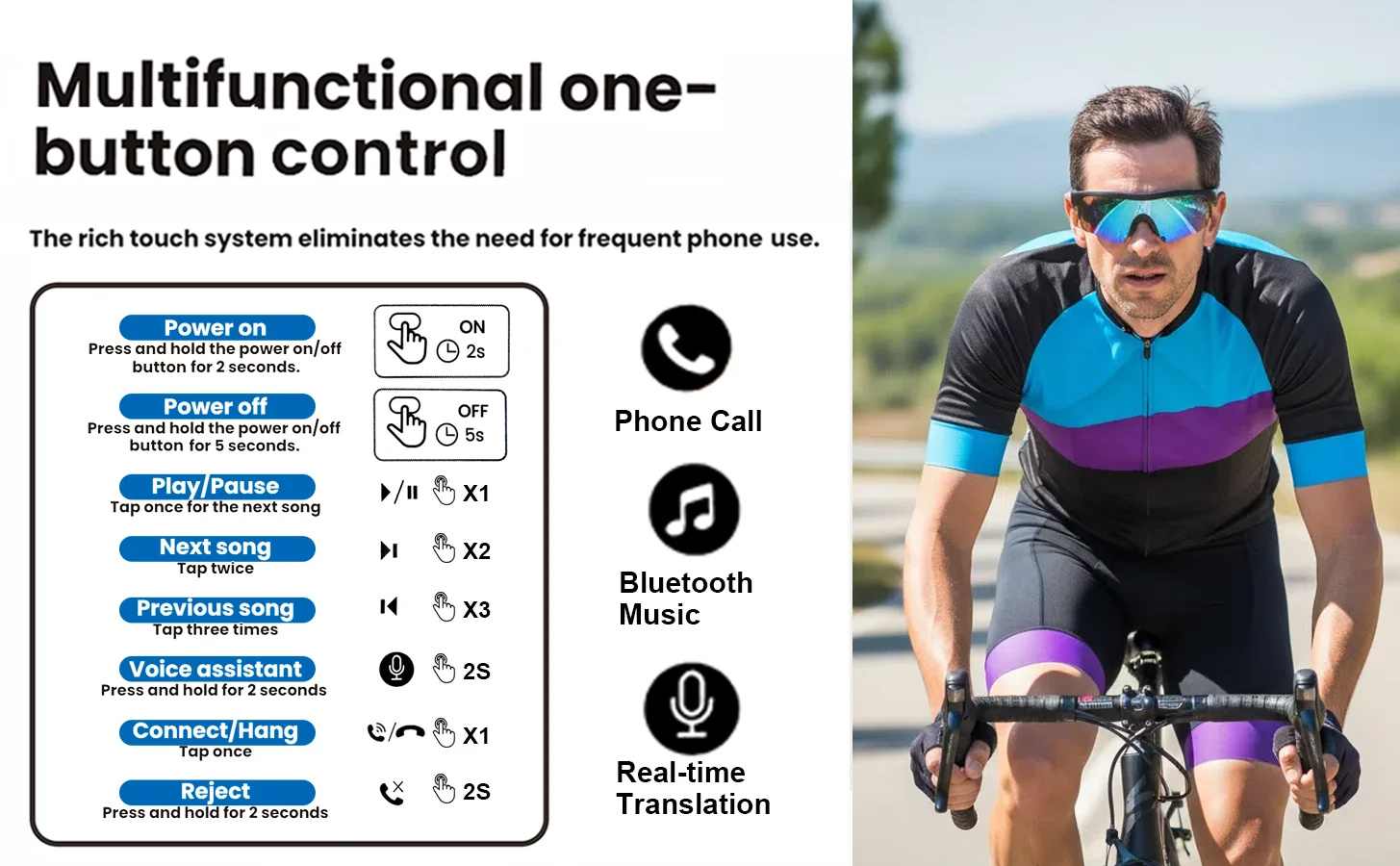Specially designed for various activities, including golf, driving, fishing, cycling, running, rowing, fitness, and racket sports. They can be securely and comfortably fixed in place during any movement, allowing you to stay in touch during your journey.