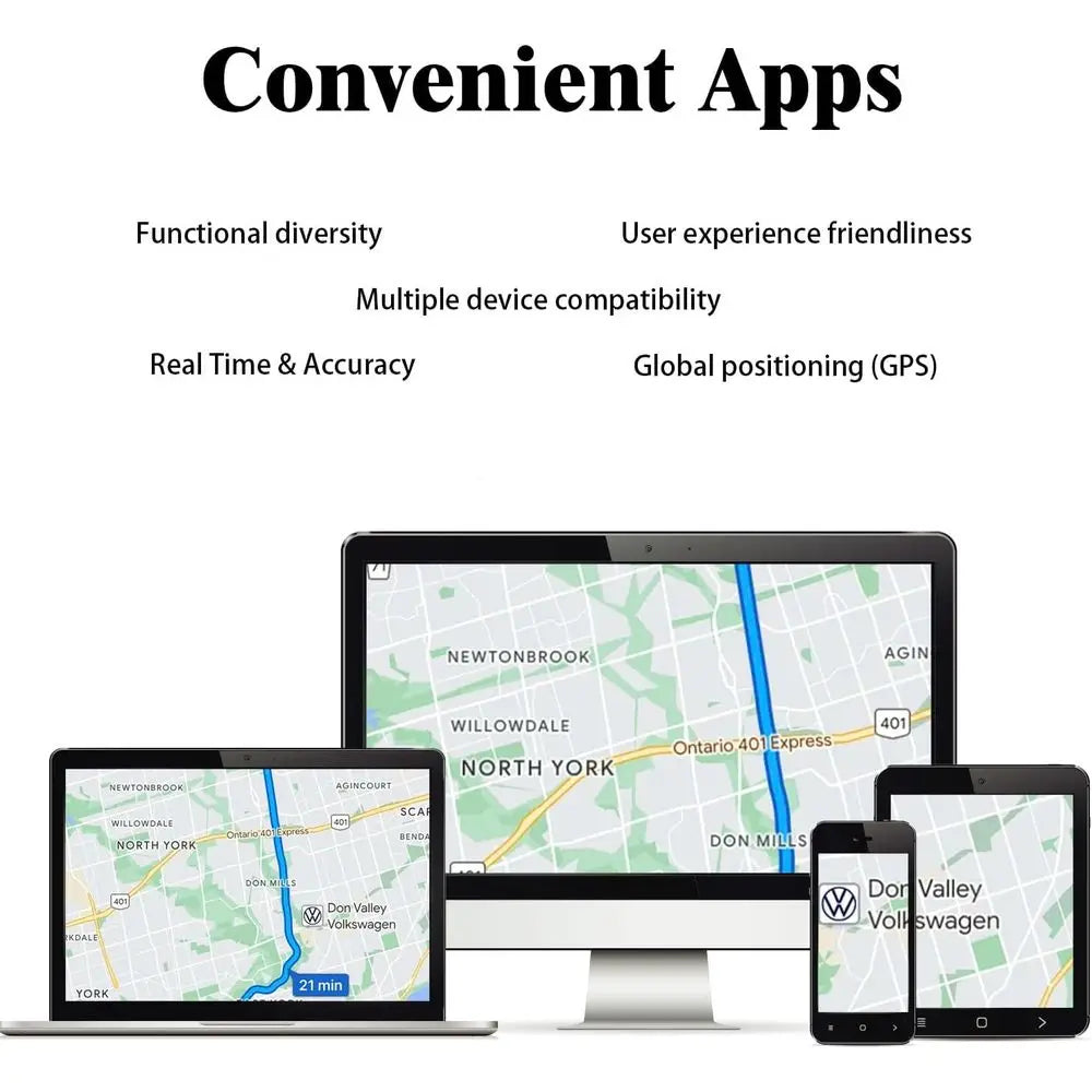 - Set up easily by scanning a QR code; the app runs on iOS and Android, and you see real-time location on Google Maps.