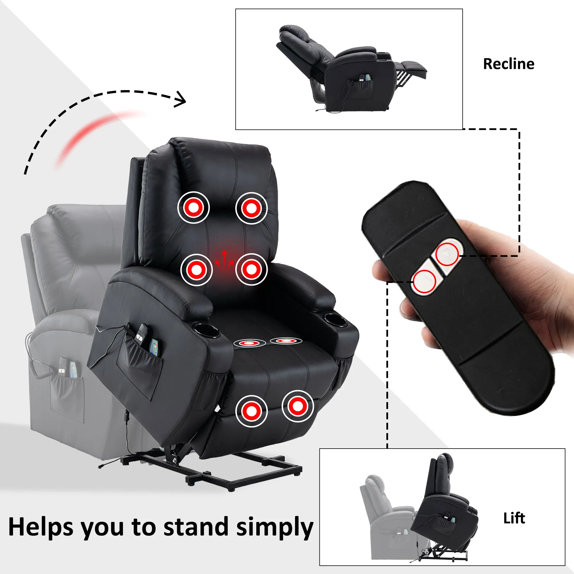 Power Lift Assistance:Assist the seniors standing up easily and adjusting to any position smoothly.