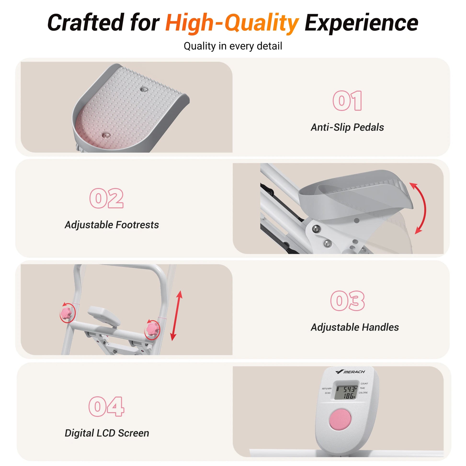 【 Real-Time Progress Tracking 】 Stay motivated with the built-in LCD monitor, which tracks your time, steps, and calories burned. This easy-to-read display helps you stay on top of your fitness goals.