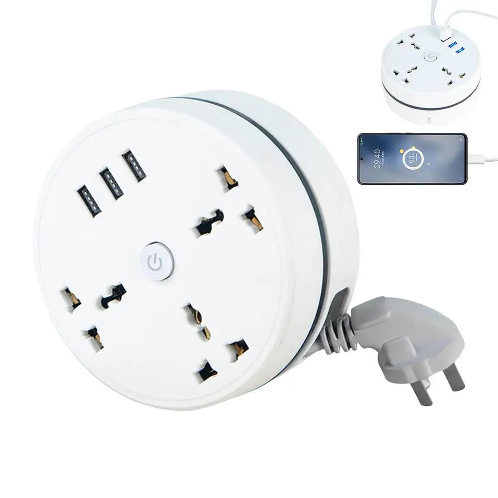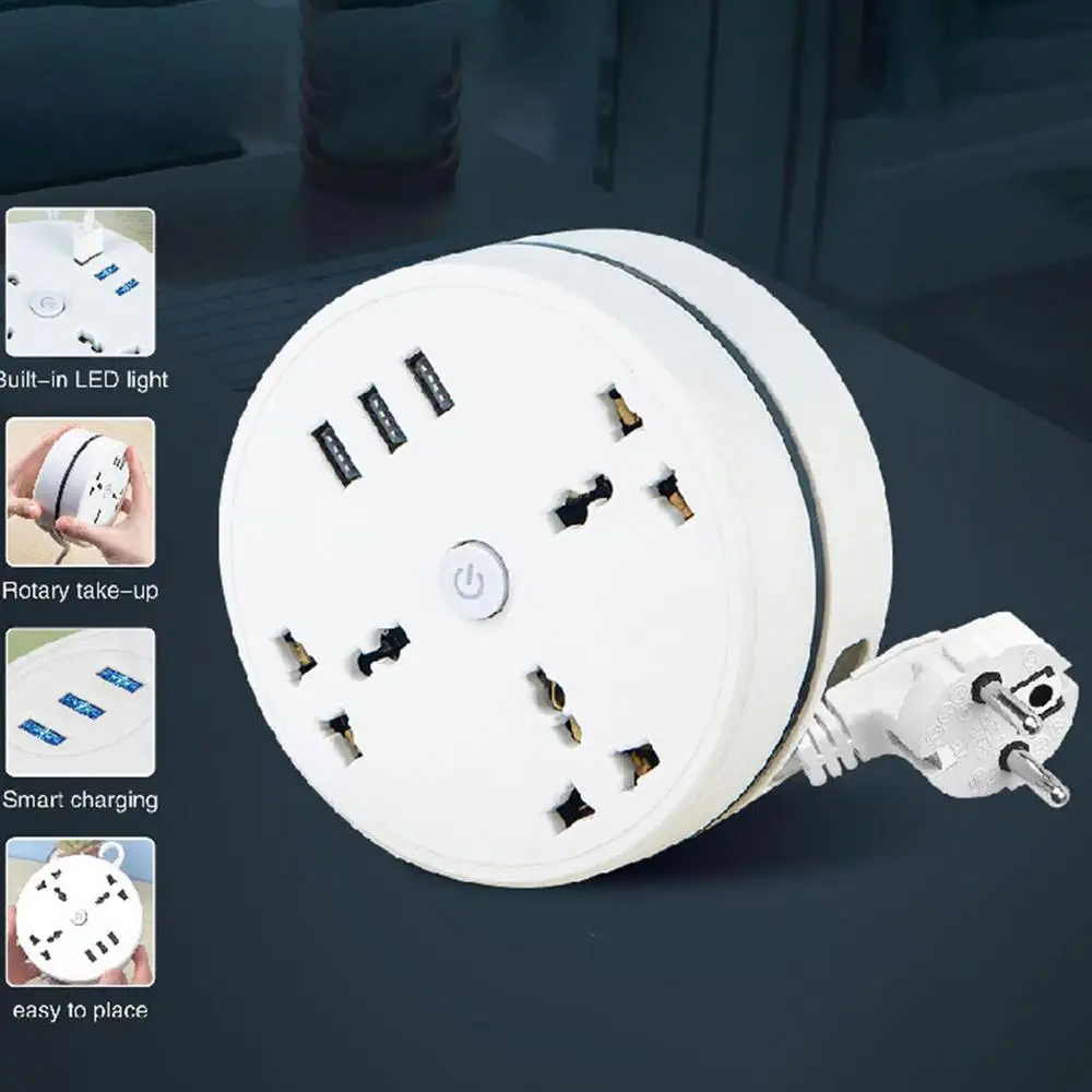 Universal Travel Power Strip Travel Plug Adapter Retractable 6.5ft Extension Cord 3 USB Ports Portable Desk Charging Universal