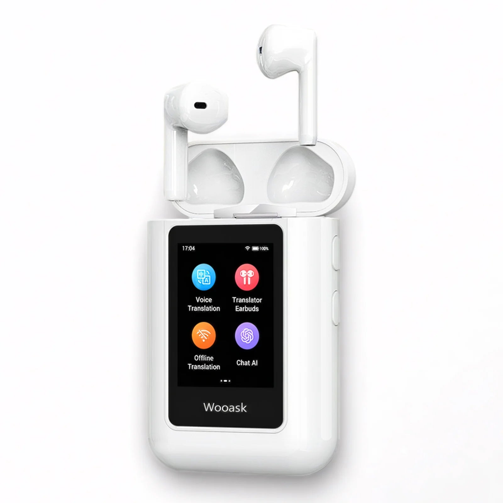 Wooask-A8 AI Translator Earbuds with Touch Screen,2 in 1 Real Time Voice Translation Earphones, Two-way Translator,NO WiFi Need